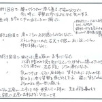 - 施術3回目で気がつけばイスに座る時に背もたれによりかからず前の方に座り姿勢を保とうとしている。逆に背もたれによりかかると体が苦しく感じる。
